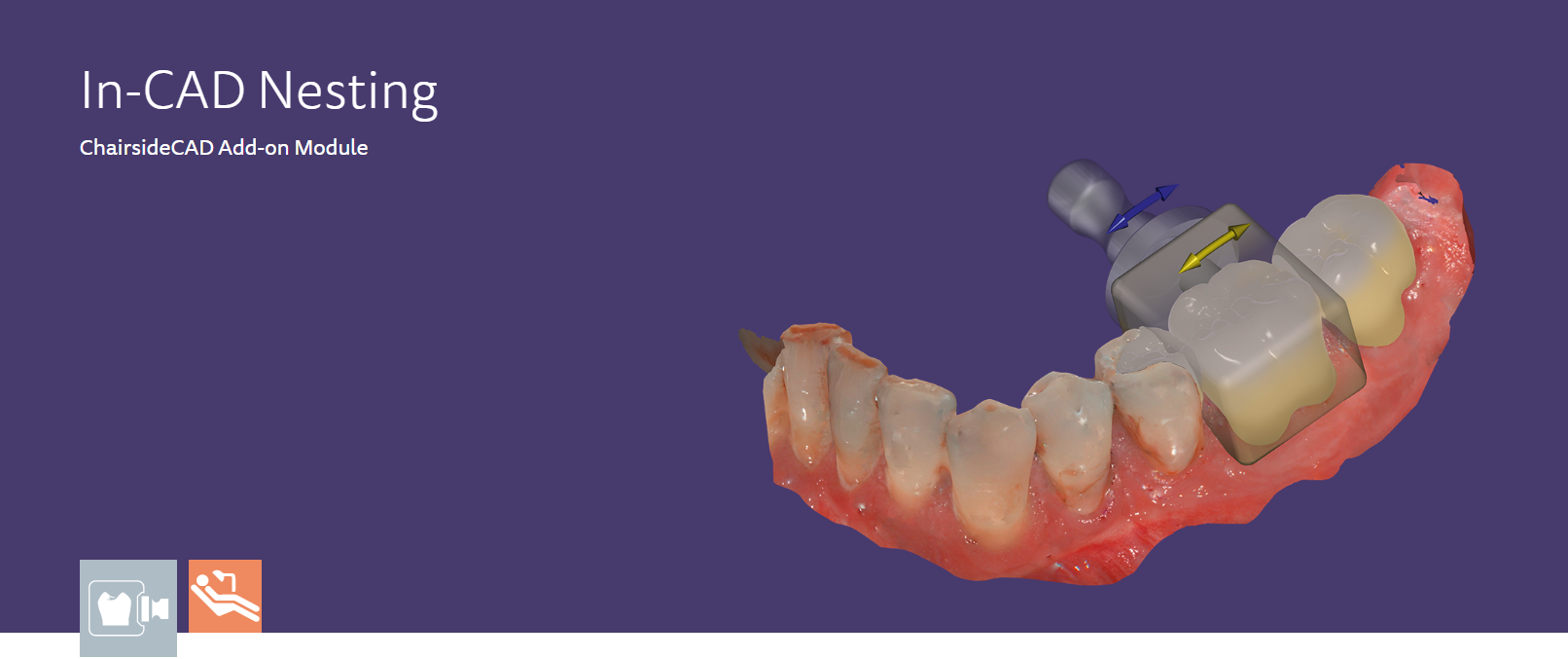 Přídavný modul exocadu In-CAD Nesting vám pomůže rychle umístit výplně do frézovacích polotovarů během procesu navrhování.